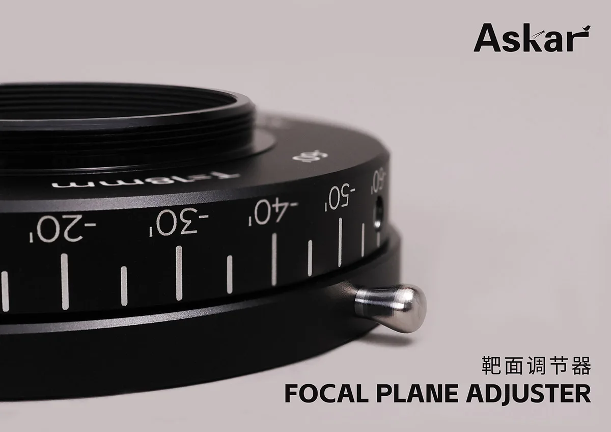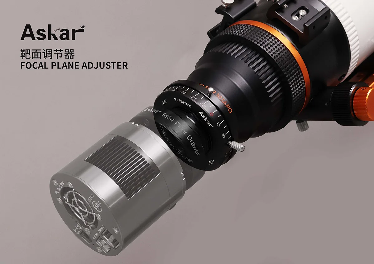 The Askar focal plane adjuster helps make precise adjustments to the tilt of the focuser or camera sensor, improving image quality.