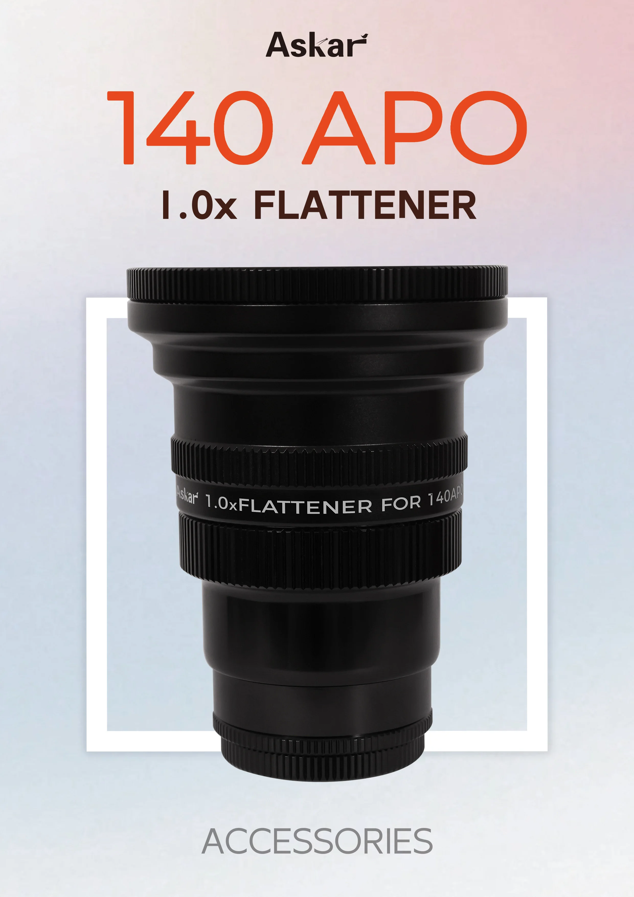 The Askar 140 APO comes with three optional premium accessories, a 1.0x flattener and a 0.8x reducer. Introduced here is the 1.0x flattener, which is optimized for the Askar 140APO, and can provide more possibilities for telescope use.