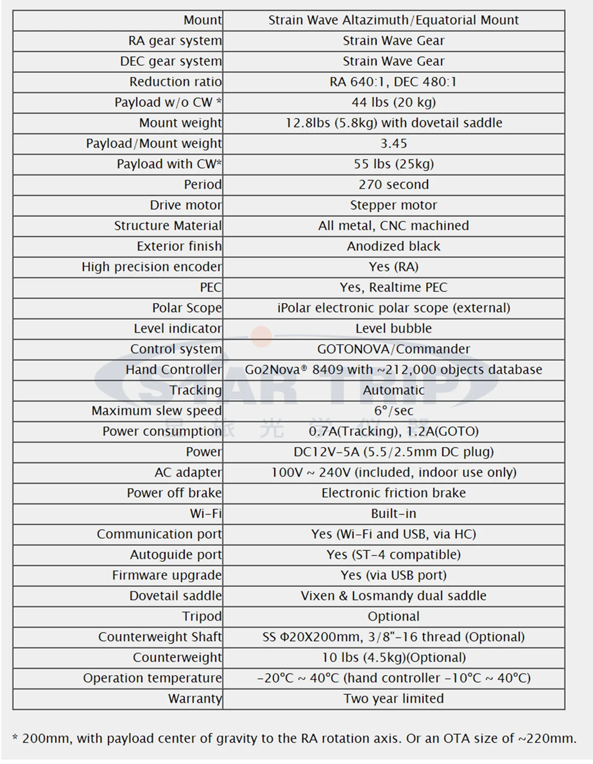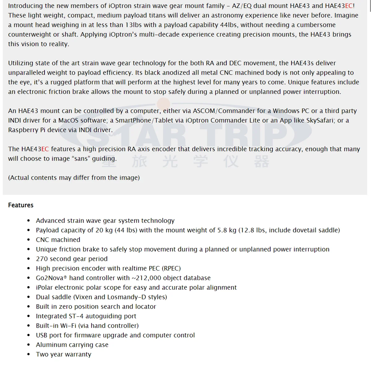 iOptron HAE43EC Strain Wave AZ/EQ Dual Mount Head with High Precision Encoders