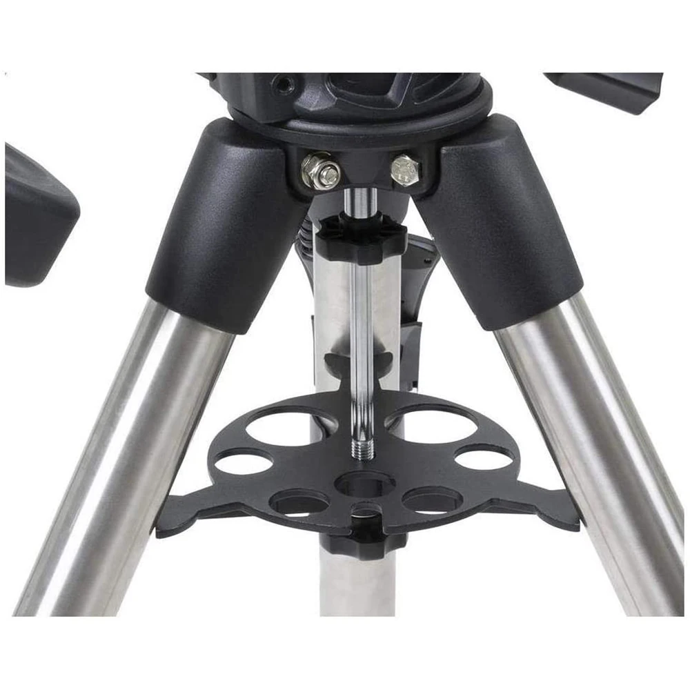 - Center tray holds 1.25 and 2" eyepieces and locks legs in place for greater stability and vibration reduction
