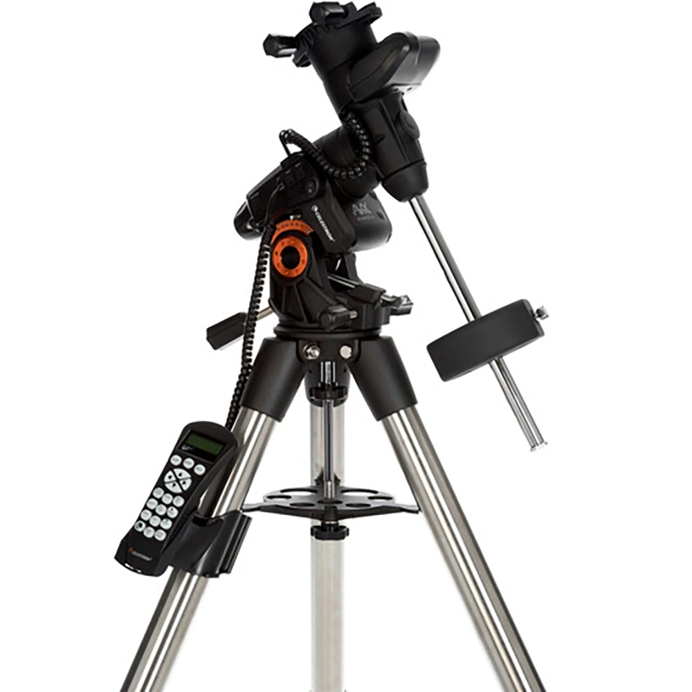 Engineered and optimized for astrophotography with mid-sized optical tube assemblies (OTAs), the Celestron Advanced VX GoTo German Equatorial Mount delivers the performance required for clear images through the use of dual-axis low-cog DC servo motors and backlash compensation. Added to this are encoders on the motors and Permanent Periodic Error Correction (PPEC), which help to improve positioning and tracking precision and ensure your target object stays centered for long-exposure photography techniques. Supporting the mount is a large 2" stainless steel tripod that has a wide stance for stability on most terrain and a center tray that holds 1.25" and 2" eyepieces and accessories and acts as a leg lock to further stabilize while helping to minimize vibrations.