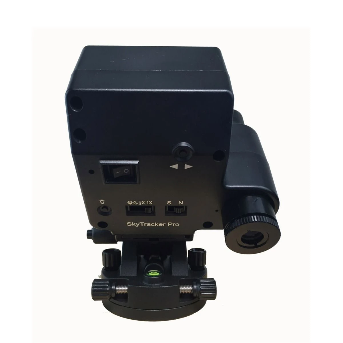 Upgraded from SkyTrackerTM, the Pro is more compact, small enough to fit on your palm, better precision, silent tracking, it even has a built-in rechargeable power source that runs for up to 24 hours of continuous operation. The improved precision polar scope maintains a fine engraved reticule, now features adjustable illumination with eight brightness levels. Using with our smart phone app, quick and accurate polar alignment is just a joy.