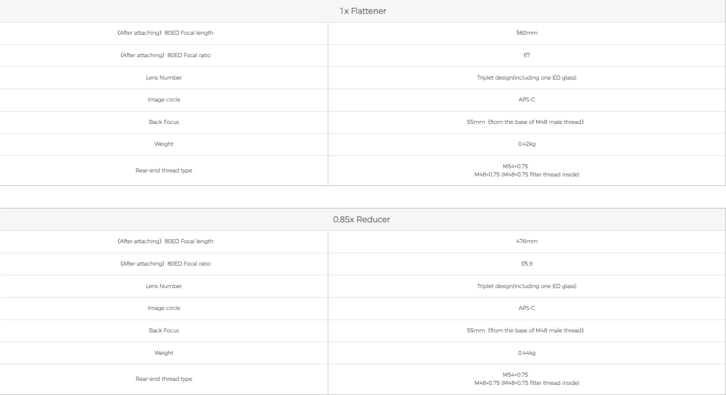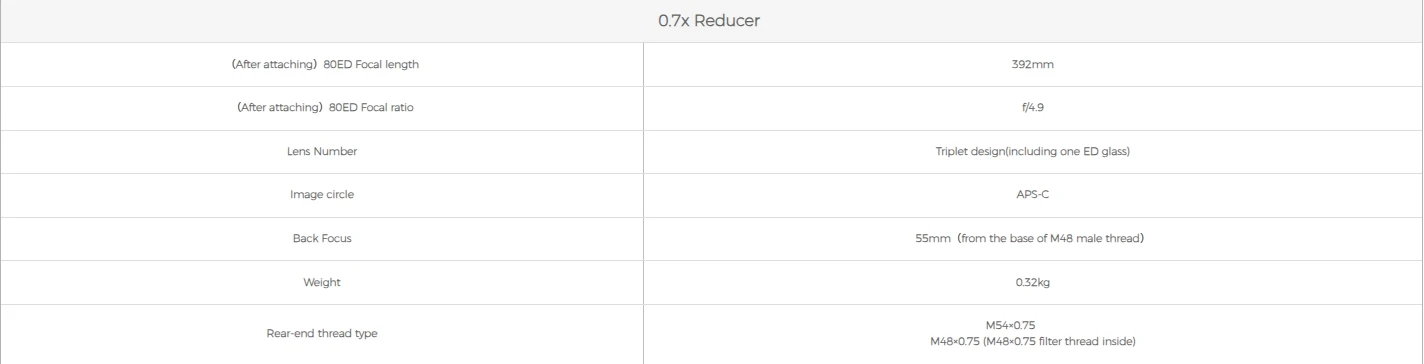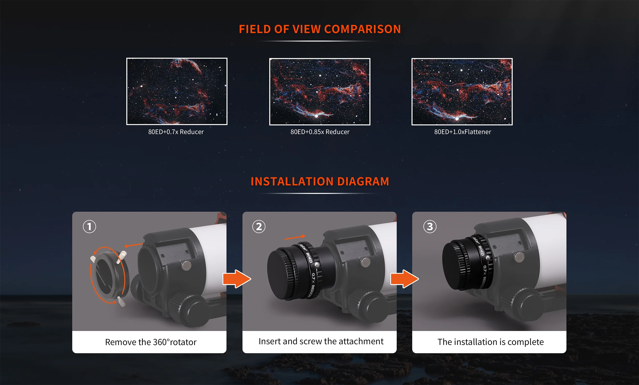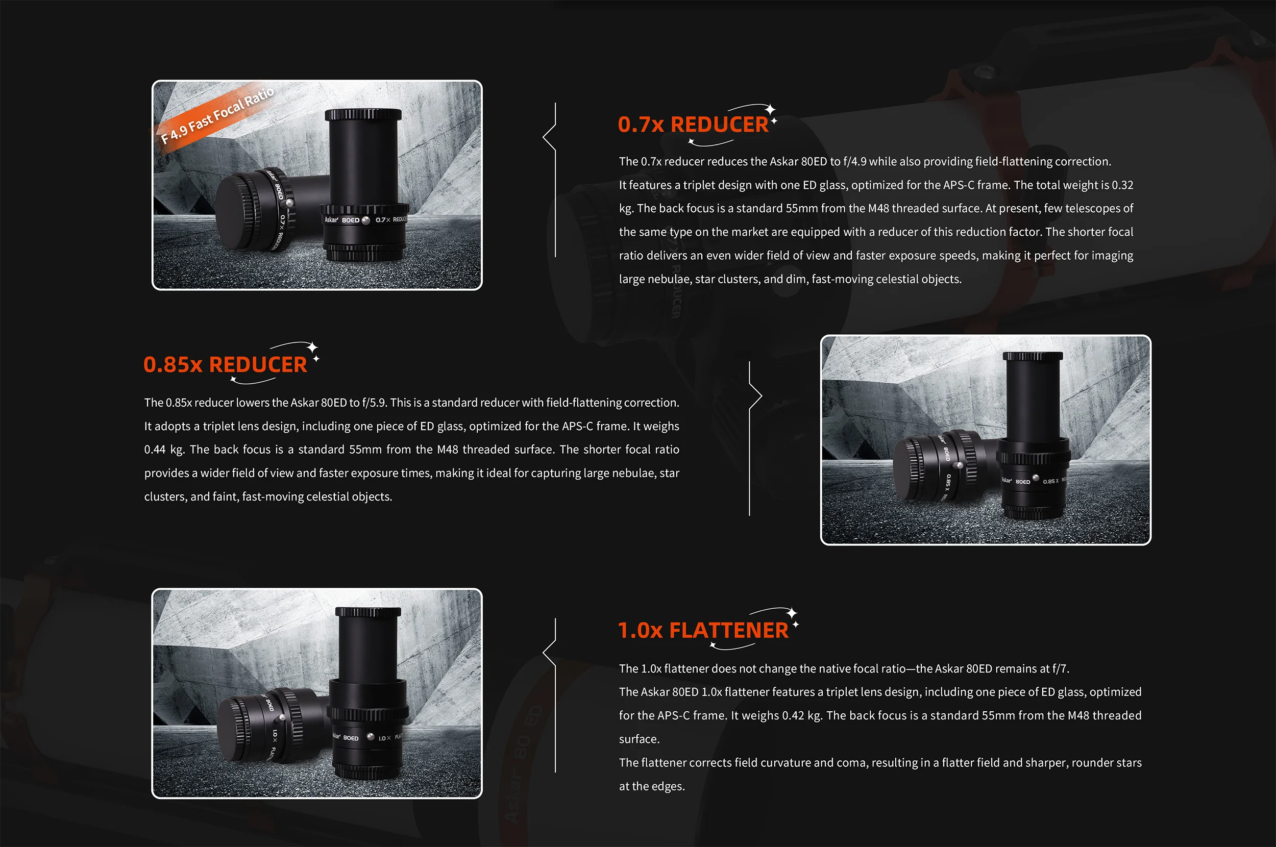 Askar 0.7x/0.85x/1.0x Reducer & Flattener for 80ED Telescope