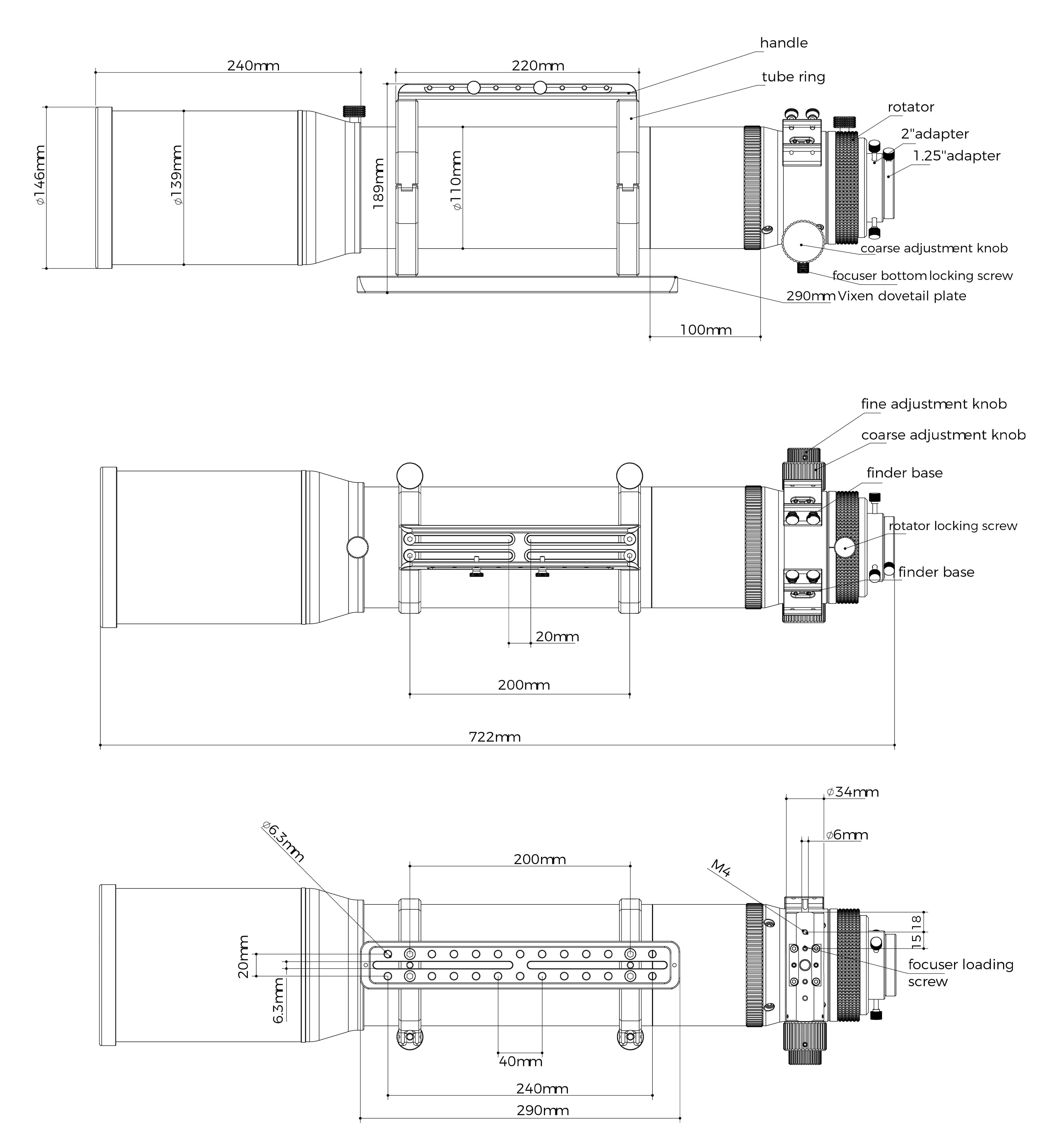 - Mount attachment: 290mm Vixen-style dovetail included (Losmandy-style sold separately)