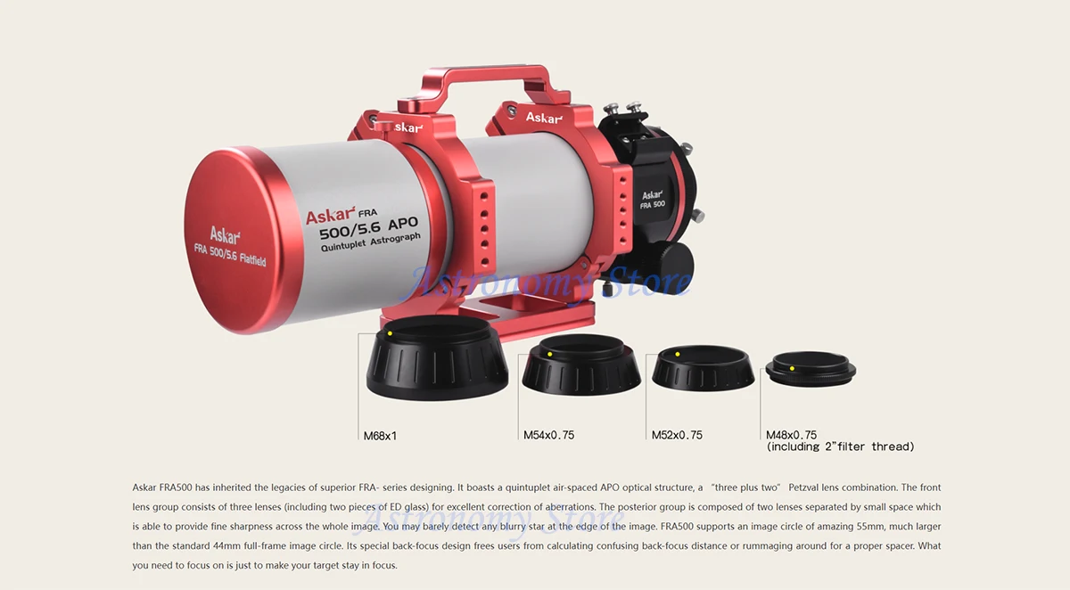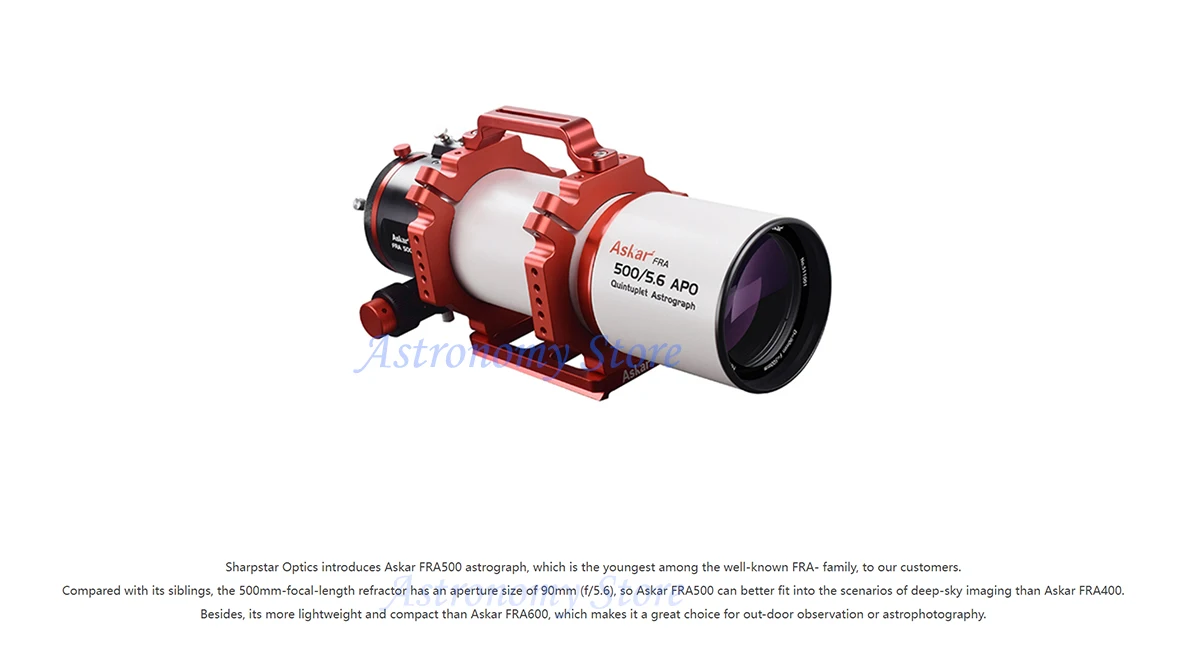 Askar FRA500 90mm f/5.6 Quintuplet Petzval Flat-Field Astrograph with F3.9 Reducer