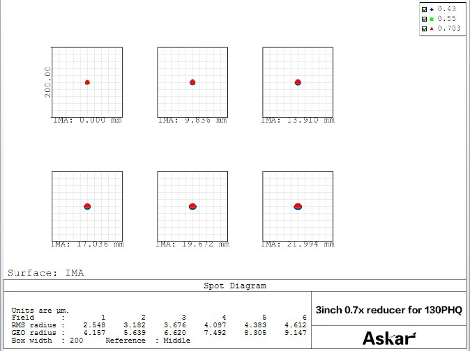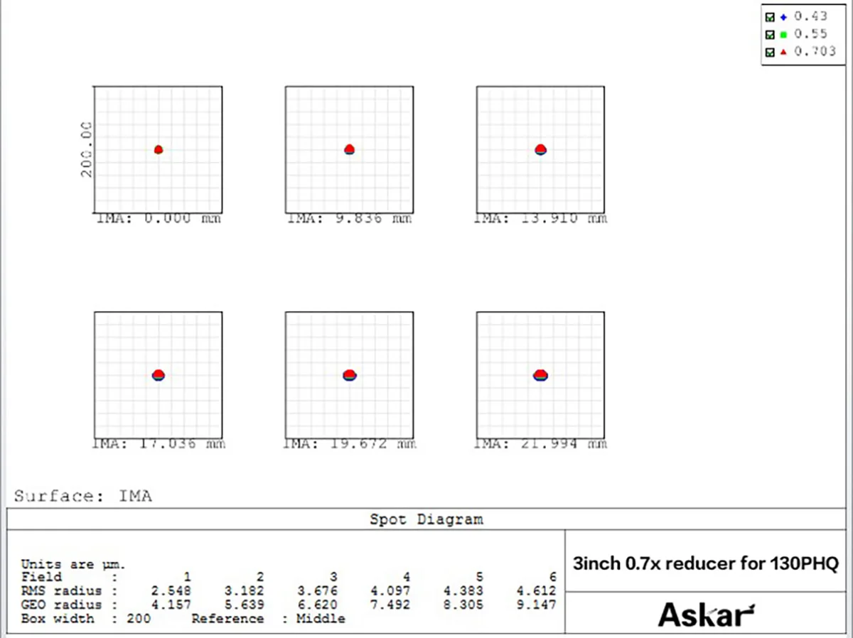 For ultra high resolution full format sensors found in cameras like the ZSO ASI-6200, the optional 0.7x Reducer provides even smaller spot sizes off axis and is highly recommended.