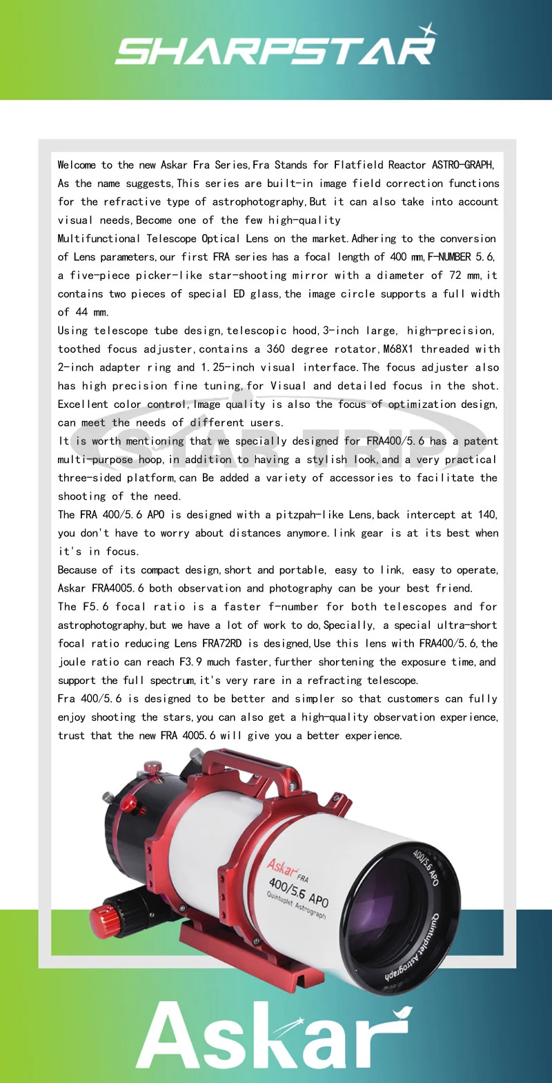 Sharpstar Askar FRA400/5.6 Five-piece Petzval structure celestial starscope Deep Space Photography OTA