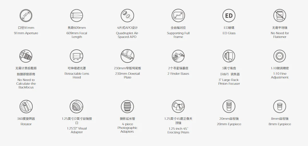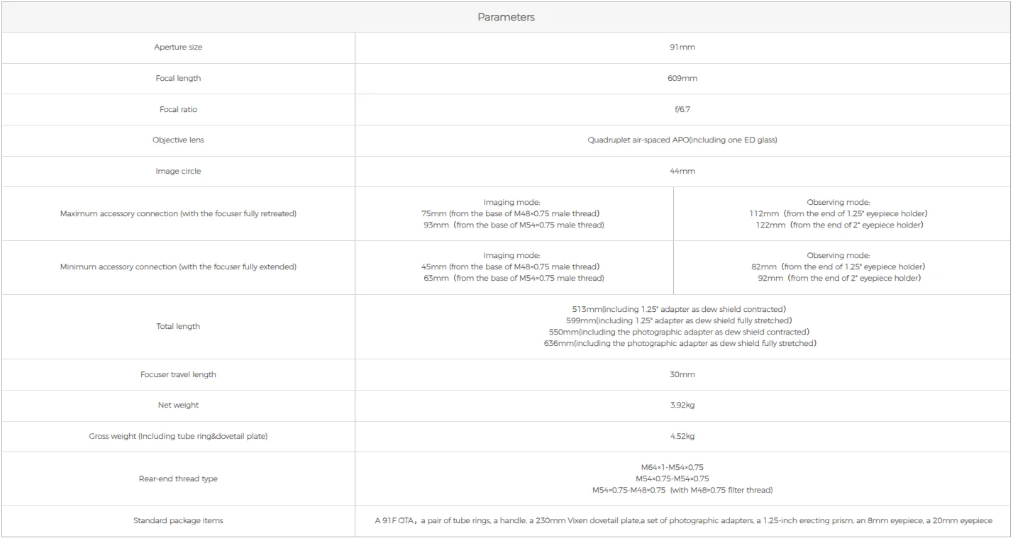 Whether for deep-sky astrophotography, planetary observation, or birdwatching and travel, the 91F is your ideal companion for exploring the world.