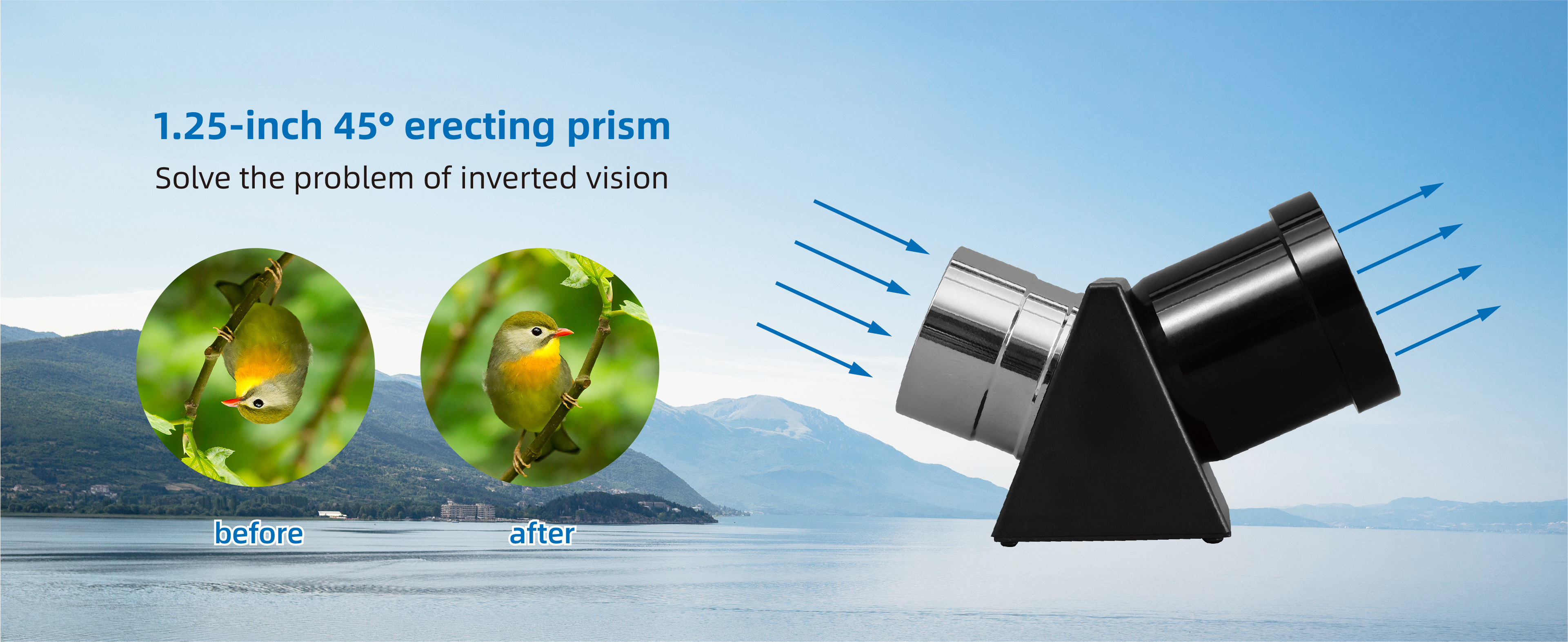 The 1.25-inch erecting prism provides correct left-to-right and down-to-up image views, making users easy for you to conduct terrestrial and astronomical observations without the hassle of seeing images reversed up, down, left, and right.