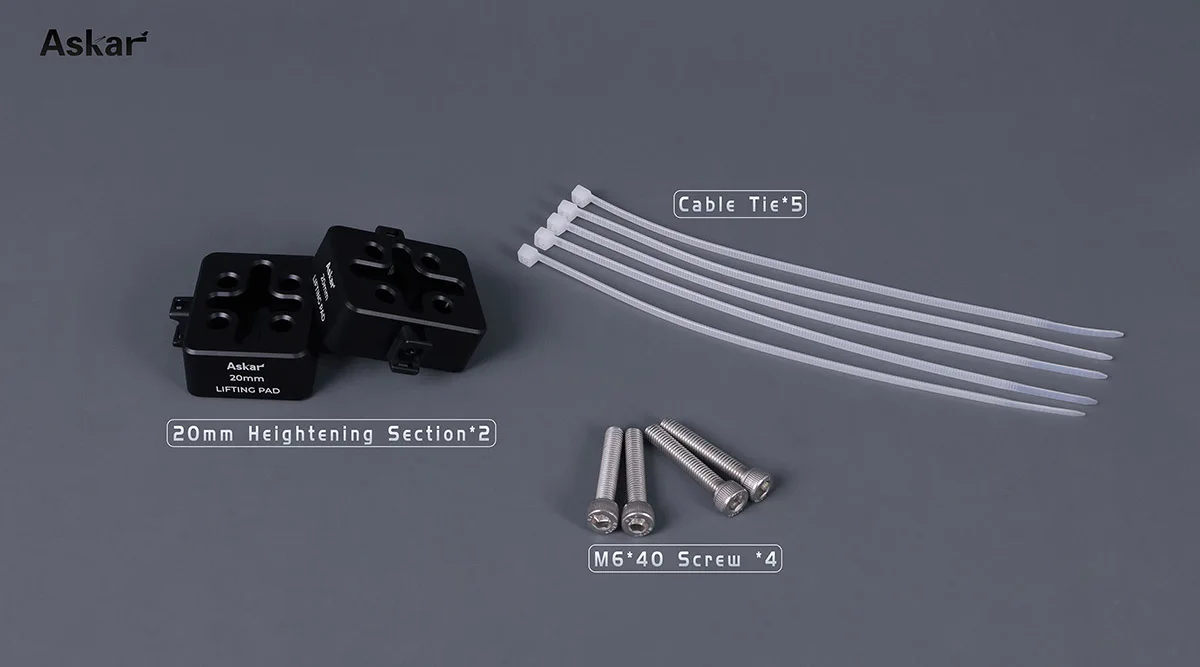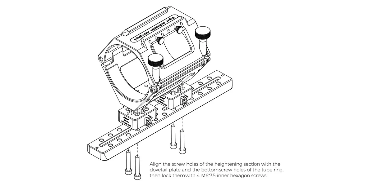 Attaching the heightening section underneath the SQA OTAs can further minimize the risk of telescope collision damage during equatorial mount operation and create more space at the bottom of the OTA to accommodate different connecting devices.