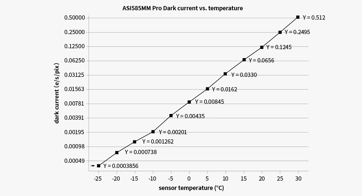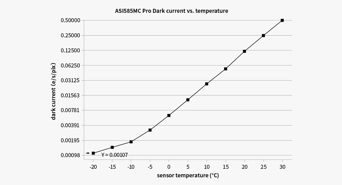 Below is the dark current curve of ASI585 Series at the temperature from -20℃ to 30℃.